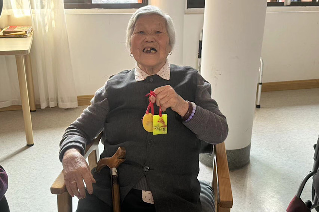 歌唱结束后,同学们带着微笑,走到老人们身边温暖互动,询问老人的年龄、身体状况等。一位和任敏月同学聊天的王奶奶不禁潸然泪下。王奶奶潸然泪下是因为她看到我们这一代优秀的青年,祖国的未来交给了我们,她希望我们好好学习,好好努力。在聊天之中同学们也拿出香薰干花蜡片送给爷爷奶奶,爷爷奶奶对收到这份礼物表示很开心。