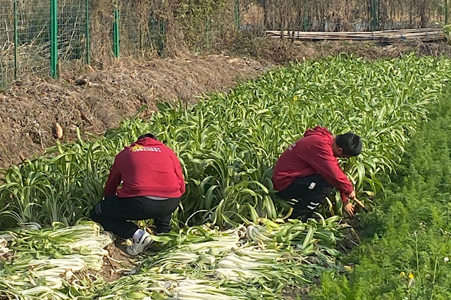活动伊始,同学们的有序分配下,各小组分别进行了收割和锄地。过专业农技人员的指导,同学们认真学习了割菜和锄地的技巧和方法,然后分组进行实践操作。收割的同学认真细致地割下新鲜蔬菜,锄地的同学则用力挥舞锄头松土除草。