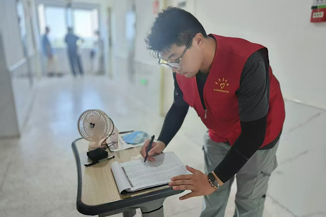 校内,宿舍安全员们也严阵以待。安全员们时刻留意着校园内的一举一动,拦截传单等非官方宣传材料,引领新生办理各项事项。他们以高度的责任感守护着校园的安全,为新生们营造了一个纯净的学习和生活环境。每当有新生到来,安全员们便热情地迎上前去,引领他们前往宿舍,并详细介绍校园的各项设施和规章制度。