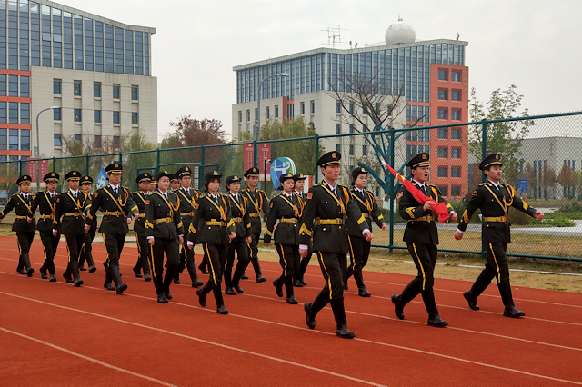 随着主持人的宣布,升旗仪式正式开始。国旗护卫队迈着矫健的步伐,护送着鲜艳的五星红旗走向国旗台。在雄壮的国歌声中,五星红旗冉冉升起,全体师生肃立,面向国旗行注目礼,表达对祖国的无限热爱和崇高敬意