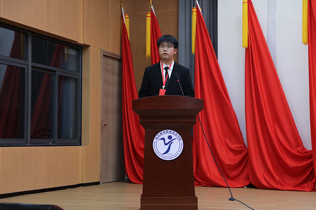 优秀学员代表黄文博同学分享了自己的学习感悟:要做理想坚定、不懈奋斗、勇于承担、甘于奉献的新青年以坚定的信念,主动在实践中磨砺,将个人理想与学校发展大局紧密相连,以实干精神积极投身学校建设、校园文化传承与创新,为南机电的蓬勃发展贡献青春力量。