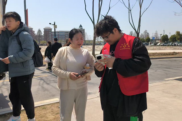 考试当天,学生志愿者们全方位投身服务工作。他们在校园的各个角落积极行动,主动上前为考生和家长提供贴心帮助,从答疑解惑、指引路线,到协助维持秩序、介绍校园生活设施,事无巨细,力求为考生和家长营造安心、舒适的考试环境,助力招生考试有条不紊地推进。