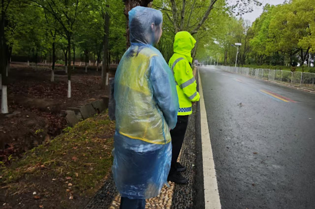 赛道沿线,每隔一段距离就有身着鲜艳志愿服的同学们挺立坚守。于赛前清理赛道上的障碍保持赛道封闭,如遇摔车等突发状况,及时通知取得救援。即使面对台风的侵袭也依然用双手扶住赛道两旁的护栏,防止倒塌砸伤高速行驶中的运动员。在终点区域,志愿者们的热情与风雨形成鲜明对比他们呐喊助威,为冲刺的运动员送上最炽热的欢呼。