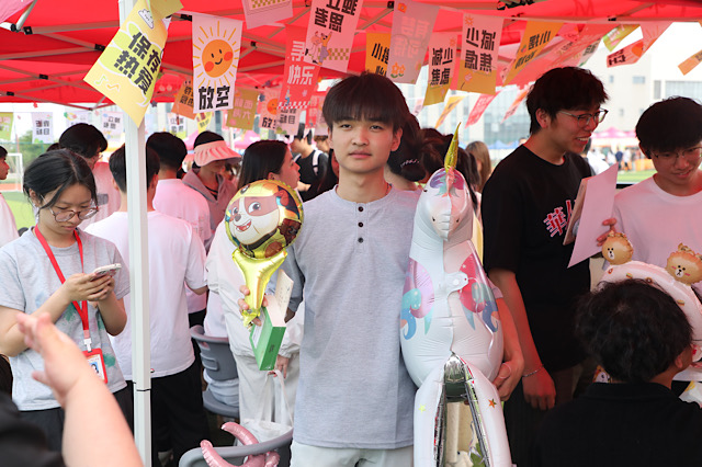 随着镜头移向操场,集市活动正如火如荼。文化展示区、互动体验区、科技展示区、心理集市、非遗集市、美食集市等区域有序分布,恰似一幅绚丽多彩的文化拼图。在非遗集市,师傅们如同技艺精湛的魔法师,现场展示高淳羽毛扇、木雕、糖画、版画等制作技艺,他们的双手上下翻飞,一件件精美的非遗作品逐渐成型,引得众多师生纷纷驻足,目光紧紧追随,满心好奇地亲身体验。互动体验区里,趣味游戏与抽奖环节交织,欢声笑语此起彼伏。同学们手持活动手册穿梭于各个摊位打卡集章,就像在收集文化碎片,去拼凑好那承载着非遗记忆的拼图。整个现场气氛热烈似火,大家的参与热情高涨如潮,完成一个又一个有趣的文化挑战。