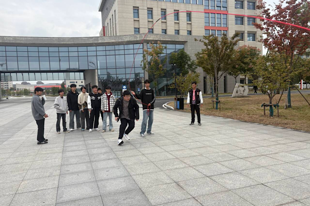 “一根绳,牵起一生情”,鲁班广场上甩动的长绳,不仅传递着年轻一代的活力,更承载着对传统文化的创新传承与温暖的集体温度,进一步营造了和谐温馨的校园文化氛围。