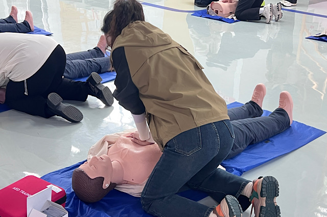 理论教学培训中,老师以生动详实的案例切入,围绕心肺复苏(CPR)、自动体外除颤器(AED)使用、创伤救护包扎及常见急症与意外伤害处理等内容展开。用通俗易懂的语言将复杂急救原理转化为清晰知识要点,为后续实践操作筑牢理论基础。
