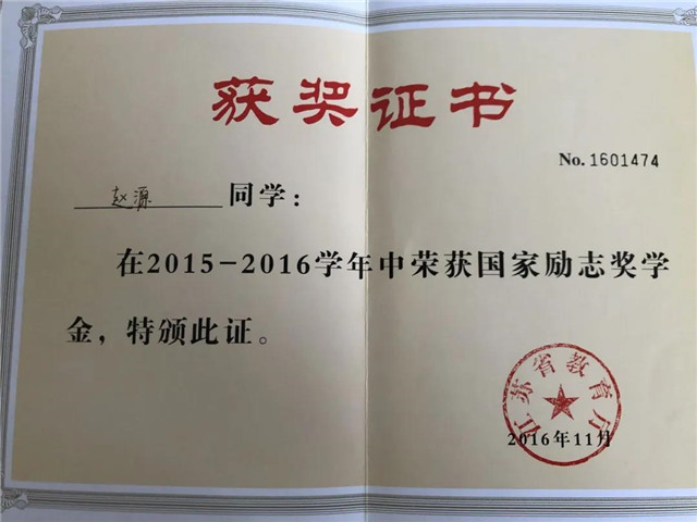 20152016学年:“三好学生”、“优秀共青团员”、“国家励志奖学金”;