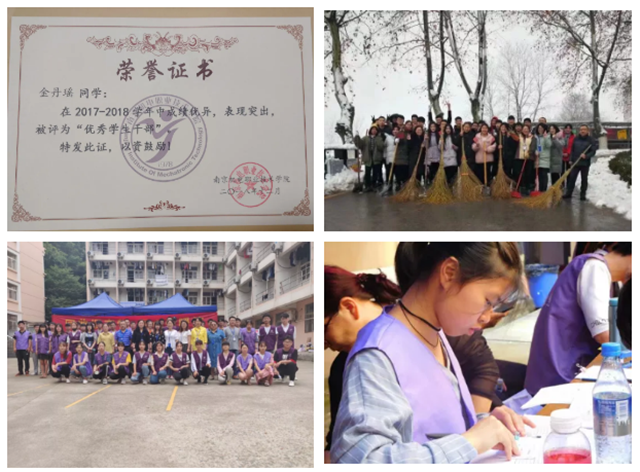在校期间,成绩专业第一,综测第一。曾获国家奖学金、国家励志奖学金、学院第二届激光切割大赛二等奖,第十届“蓝桥杯”全国软件专业人才设计与创业大赛江苏省选拔赛三等奖、第二届中英STEAM创新交流大赛江苏省选拔赛一等奖。担任系部学生会副主席,班级文娱委员,曾多次被评为学院“优秀学生干部”、“三好学生”、“优秀团员”、“五四青年”。