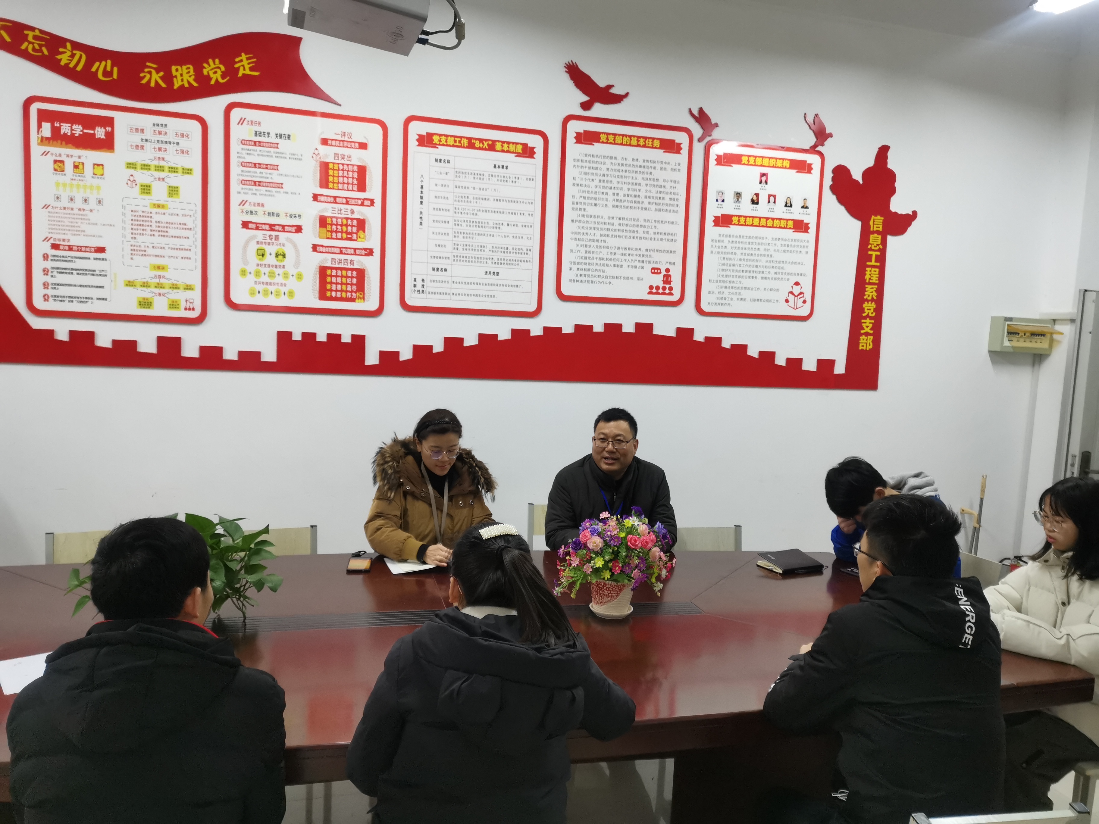 为了贯彻落实学院党委工作部绿色暖心行动的要求,信息工程系党支部于2020年1月7日上午9点在系部会议室开展了“2019年助学助困贫困生座谈会”活动。参加此次活动的有学院党委工作部周启国主任、信息系王玮主任、胡枫书记、辅导员及贫困生。