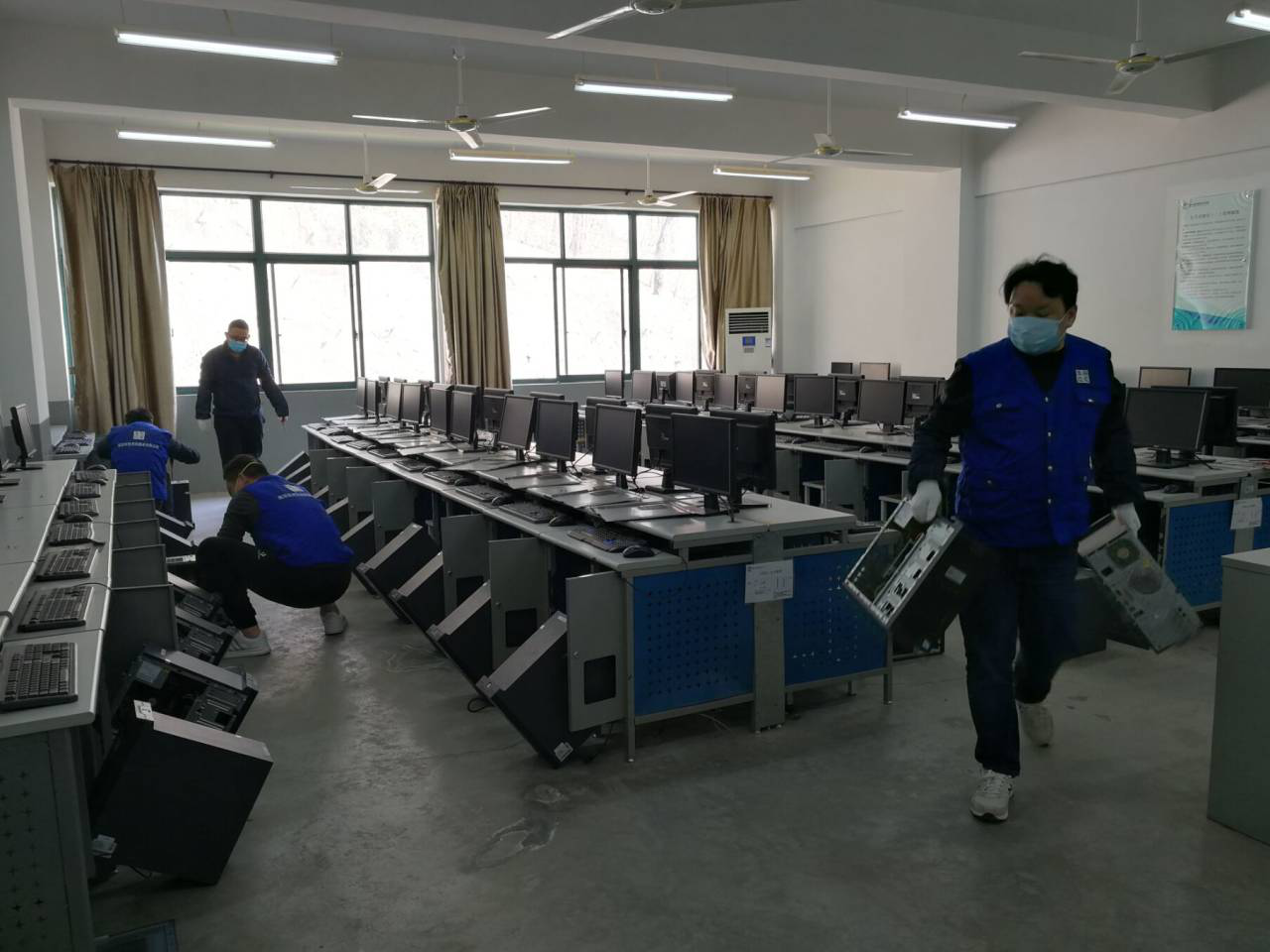 为了深入贯彻落实学院关于实验实训室安全专项工作的要求和精神,信息工程系积极响应,于3月16日和3月17日两天,由系部主任王玮、党支部书记胡枫带队,对系部所辖实验室的计算机设备进行了专项除尘工作,系部所有男老师参加活动。