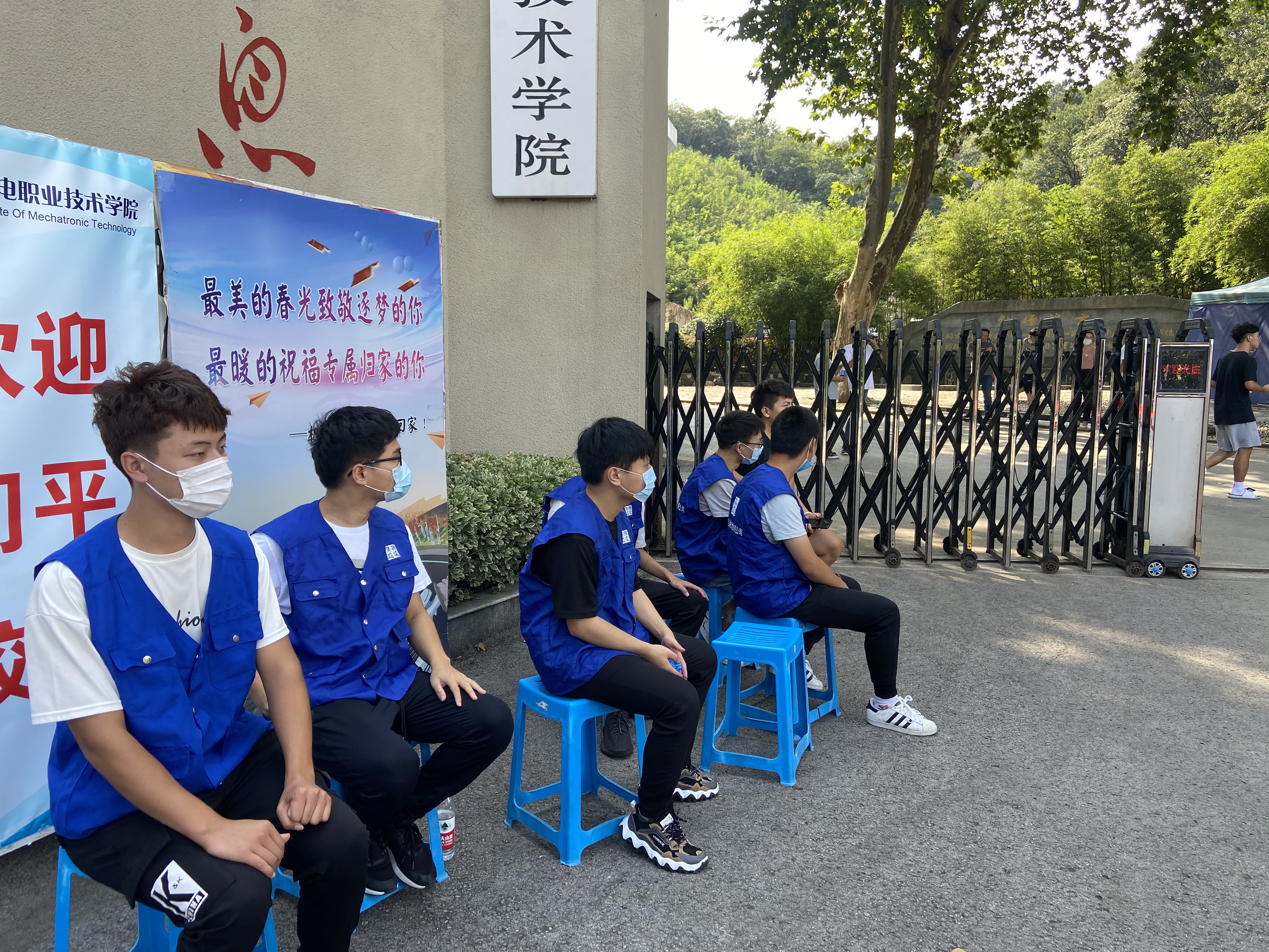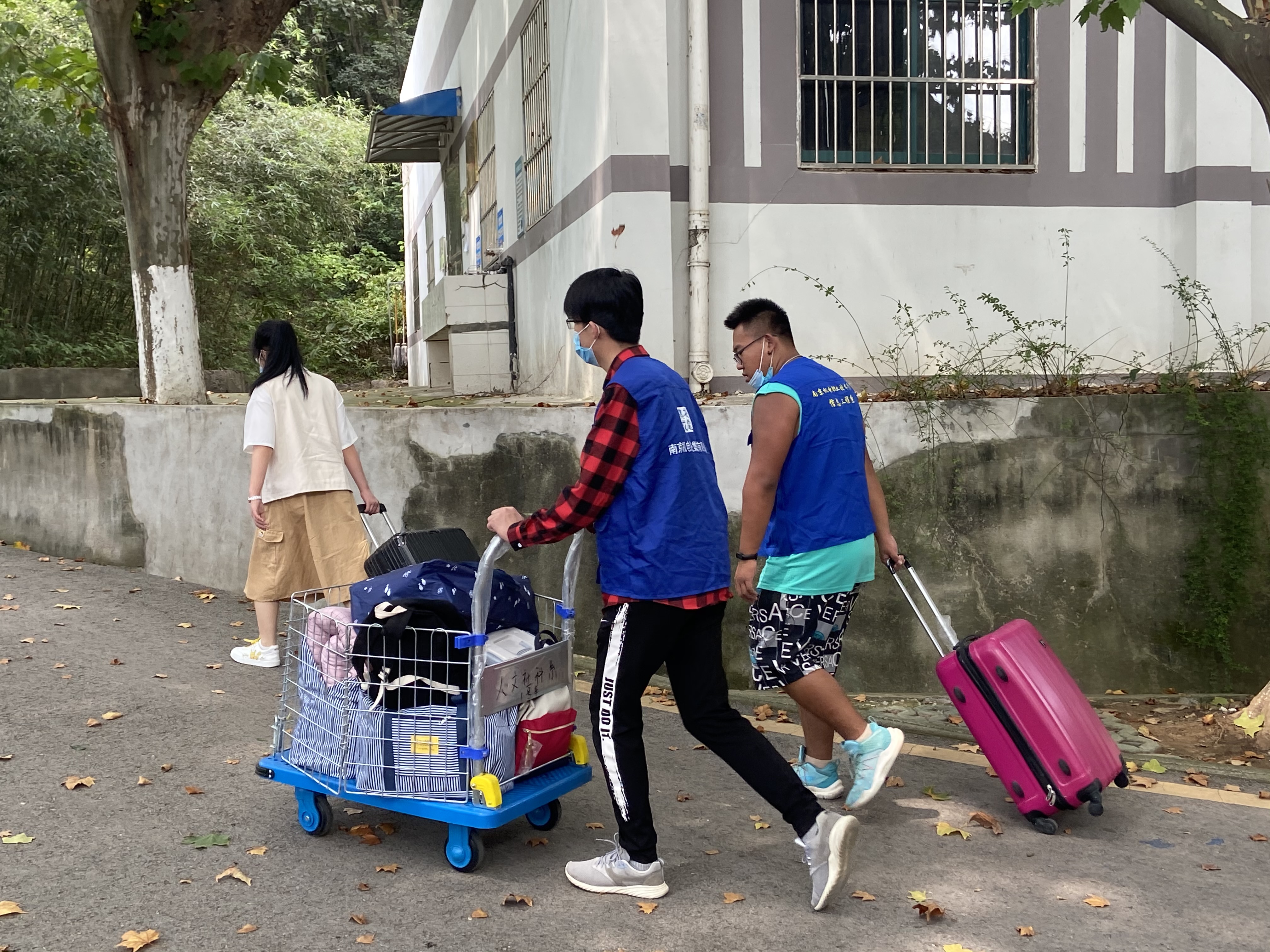 根据安全进入校园流程,学生在进入校园前跟随志愿者进入返校生安全检验通道。首先需要进行体温检测,体温正常才能在志愿者的指引下进行下一环节。第二环节,学生要核验苏康码是否为绿色,最后在志愿者的指导下打开今日校园进行扫码签到,确认无误后进入校园。进入校园后,同学们也不用担心行李过多带来的不便,会有穿着志愿者马甲的志愿者迎接,帮助返校学生们搬运行李。我系志愿者们将行李从校门口搬运至宿舍门口,一次次地往返于校门口和宿舍。在烈日炎炎下,汗流浃背,晶莹的汗水如同雨水般滴落,将衣服湿透,但那飒爽的身姿给学校增加了一抹亮丽的风景线。系部的老师们也进入宿舍,了解大家返校情况,并给每间宿舍送上免洗洗手液,为学生返校生活表示一份系部的心意。