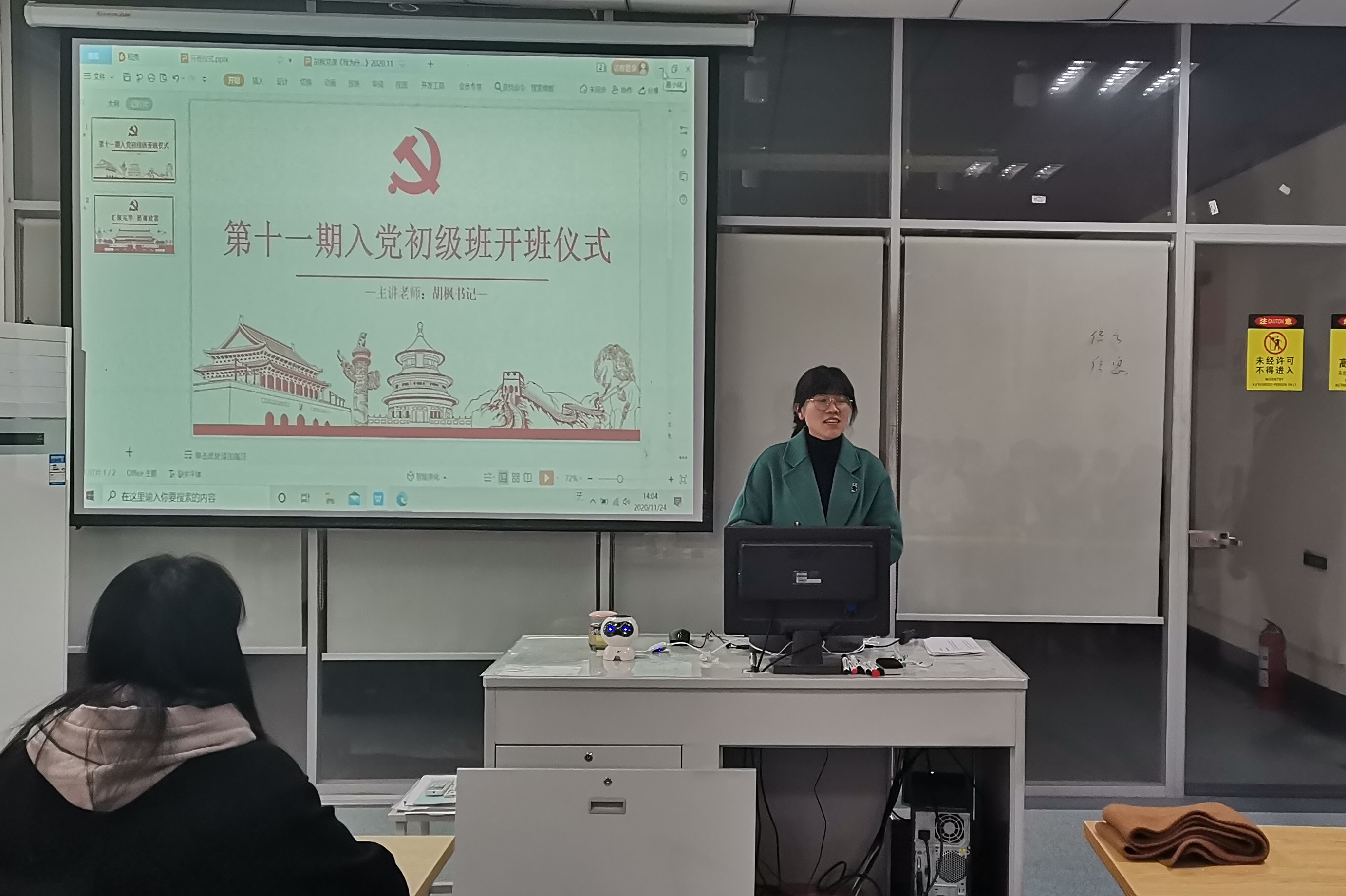 开班典礼过后,第十一期初级党课班正式开班,第一堂课由党总支书记胡枫书记主讲,课程主题是《我为什么加入中国共产党》。胡枫书记首先从党的背景以及南京航空航天大学马克思主义学院党支部书记徐川的故事讲起,由此引出培训主题:“信仰”。接着胡枫书记从把握信仰的内涵、品味信仰的味道、找准信仰的差距和践行信仰的要求等方面进行举例说明我们为什么要加入中国共产党,让原本枯燥无味的知识变得生动有趣,在场的同学们都聚精会神地听着,认真的做着笔记。胡枫书记的讲授让同学们深刻了解了党的艰辛历程。