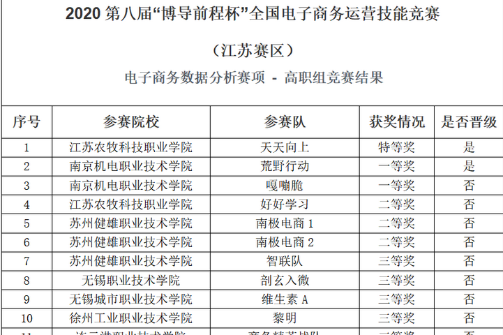 12月7日上午,2020年第八届“博导前程杯”全国电子商务运营技能竞赛-江苏赛区在线上举行。我校由12名2019级移动商务专业同学组成的4支团队与来自全省高职组参赛队伍同台竞技,最终荣获特等奖1项,一等奖3项。