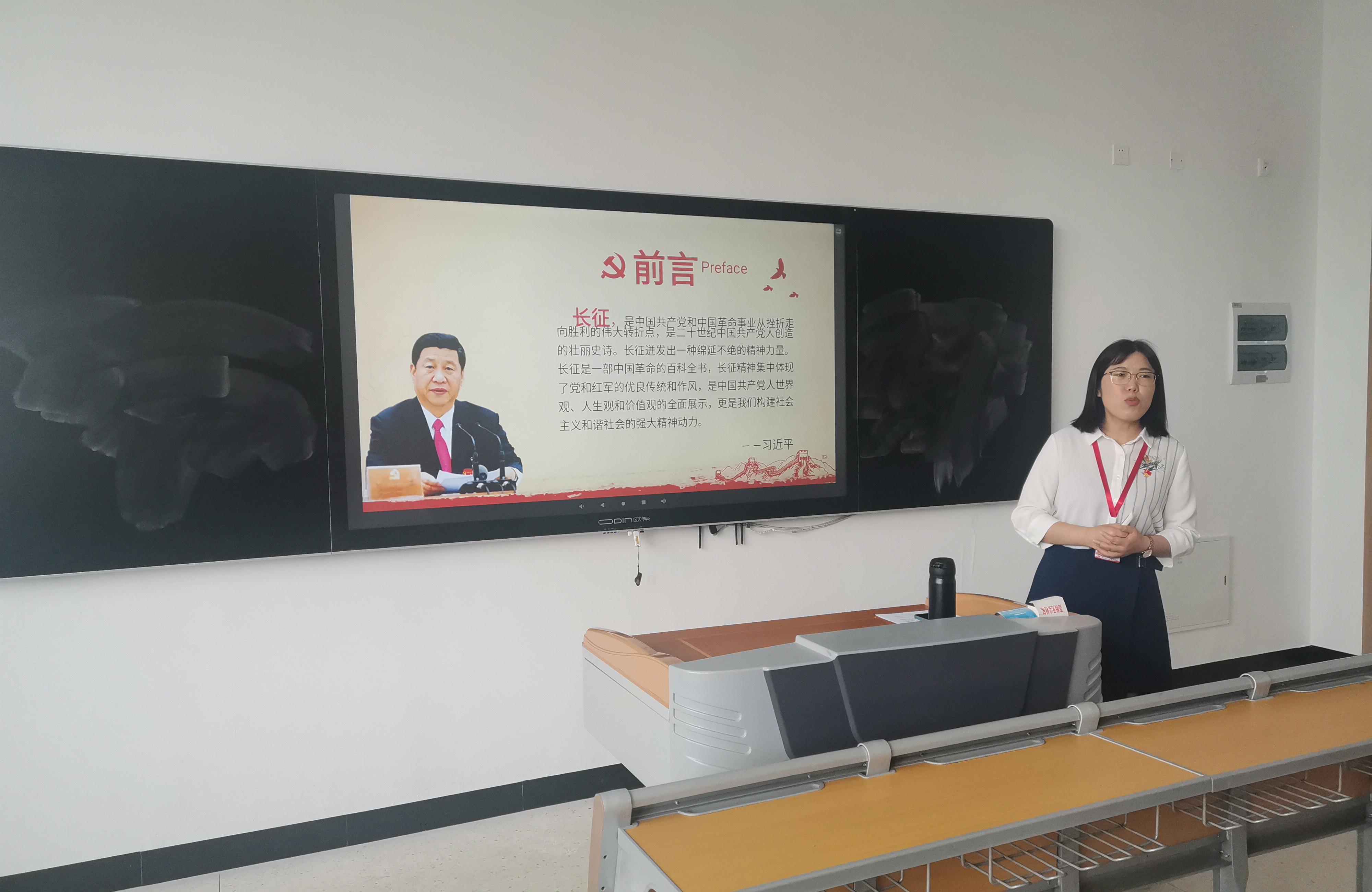 高杉老师紧紧围绕长征的伟大胜利,引领大家从长征的背景原因、历史回顾、伟大意义、习近平总书记谈长征精神、新时代的我们怎样弘扬长征精神等方面出发,使大家更加深入地了解长征精神,了解我党。从翻越五岭到疾跨乌蒙,从巧渡金沙江到飞夺泸定桥,一次又一次的胜利,无不体现了革命先烈们不畏牺牲、勇往直前、百折不挠的长征精神,老师们深受触动。接着,高杉老师又分享了习近平总书记有关长征精神的重要讲话,回望历史,分析现实,展望未来,提醒大家们勿忘历史,不忘初心,坚定理想信念。高杉老师说,大家要做一个有意志力、乐于吃苦、重于求实,有责任担当的机电人,牢记伟大长征精神、学习伟大长征精神、弘扬伟大长征精神,走好属于我们的新的长征路。