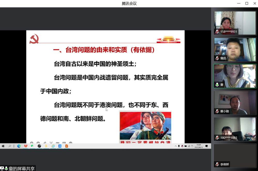 4月12日下午,根据党的二十大主题宣传教育活动工作方案的安排,信息工程系党支部依托腾讯会议平台开展了线上政治理论学习,本次学习的主题是坚持“一国两制”、推进祖国统一。支部书记吴伟萍主持会议,支部全体党员及普通教职工参加学习。