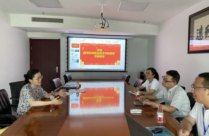 在南京宁瀚通信系统有限公司,人力资源部张经理首先介绍了公司情况与学生实习工作情况,并对学生的工作能力、工作态度给予了肯定,并承诺重点将学生生命安全放在首位。随后信息工程系胡枫书记与学生近距离沟通,了解学生在企业的工作、生活情况,同时鼓励大家保持脚踏实地工作,充分发挥个人专业技能和创新能力,出色完成每项工作任务。