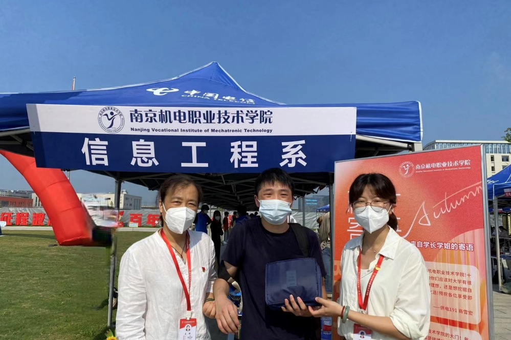 信息工程系王玮主任和胡枫书记在现场与22级新生交流沟通,并代表系部送上暖心小礼物,欢迎来自五湖四海的同学加入信息工程系的大家庭。