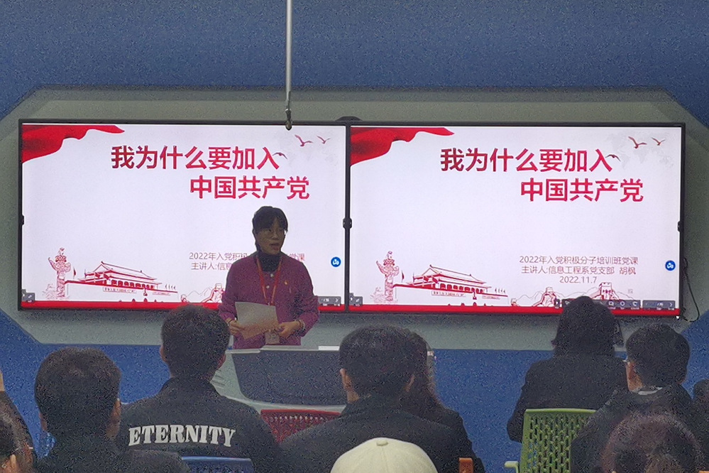 为切实做好入党积极分子的培养教育工作,提高入党积极分子的思想政治素质,端正入党动机,切实把好党员队伍的“入口关”和“质量关”, 11月7日中午在博学楼411,幻影网页版登录入口_幻影(中国)信息工程系入党积极分子初级培训班正式开班。信息工程系党支部书记胡枫老师、信息工程系党支部组织委员俞宝莹老师、信息工程系党支部纪检委员刘娴老师、信息工程系党支部宣传委员卞志勇老师出席开班仪式、系部各班级入党积极分子参加此次培训,开班仪式由信息工程系团总支秘书长王重重主持。