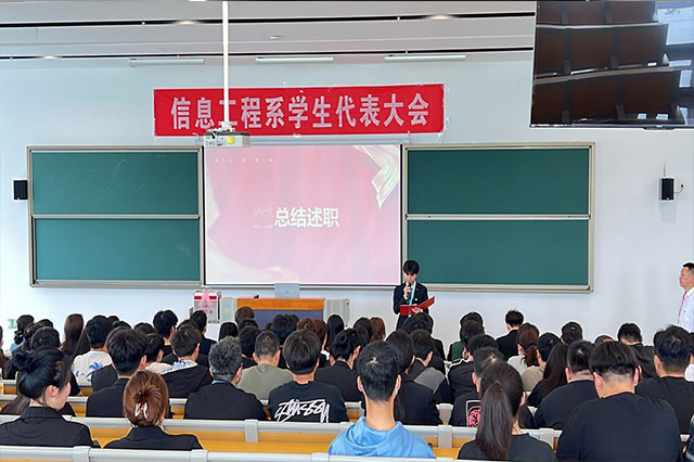 2023年4月18日下午1点,幻影网页版登录入口_幻影(中国)信息工程系第四届学生代表大会在善学楼103顺利召开。信息工程系党支部书记胡枫、党支部组织委员兼团总支书记俞宝莹、党支部青年委员兼学生会指导老师郝麒、学工处老师顾窗林、全体辅导员老师及118名学生代表出席了本次大会。大会由学生会指导老师郝麒主持。