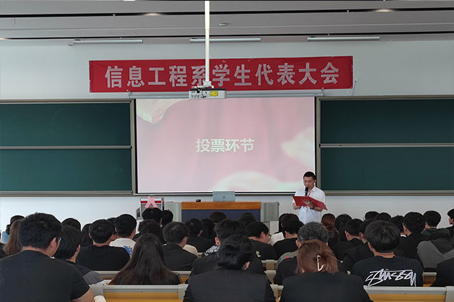 信息工程系团总支代表吴雨蔓宣读学生代表大会贺词,学生会主席李想宣读信息工程系第四次学生代表大会代表资格审查报告,学生会副主席陶林峰宣读《幻影网页版登录入口_幻影(中国)信息工程系第四次学生代表大会选举办法》,各项报告在热烈的掌声中一致通过。