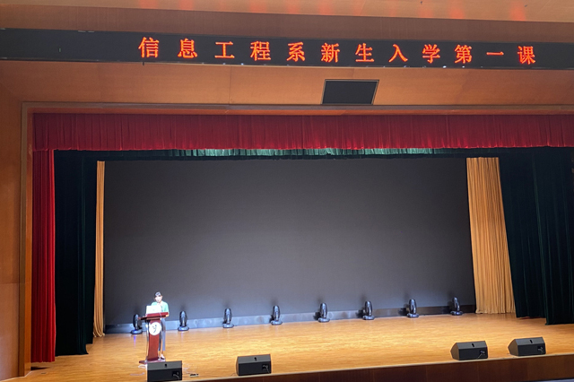 9月11日上午,信息工程系在青春剧场举办了2023级新生入学第一课。信息工程系主任姚小冬、信息工程系党支部书记胡枫、新生辅导员以及全体23级新生均参加本次大会。