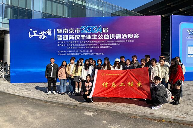 为全面落实学校“稳就业”、“保就业”决策部署,进一步完善学校就业招聘体系,全力促进毕业生更加充分更高质量就业。10月21日,信息工程系党支部书记胡枫、学工干事郝麒、就业干事陈莉娟带领移动商务S221班学生参加了江苏省普通高校毕业生公益供需招聘会。此次招聘会由南京市人力资源和社会保障局主办,旨在为毕业生提供更多的就业选择。