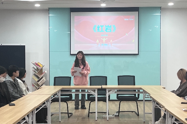 活动伊始,沈歆岩老师在发言中表示,此次“红色印记——读书分享会”不仅是一次知识分享和交流的活动,更是一次心灵的洗礼和精神的升华。她希望广大同学能够以此为契机,深入学习红色经典,传承五四精神,勇担时代使命,为实现中华民族伟大复兴的中国梦贡献青春力量。随后,分享会正式拉开帷幕。同学们纷纷走上台前,分享自己阅读红色书籍的心得体会。有的讲述了《红日》中英勇抗敌的感人故事,有的分享了《红岩》中革命先烈的坚定信念,还有的畅谈《红军长征记》中红军战士大无畏的英雄气概和壮举等等。书籍分享人或深情讲述书中英雄人物的英勇事迹,或畅谈自己从中汲取到的精神力量,或分享如何将红色精神融入日常学习和生活中的心得。