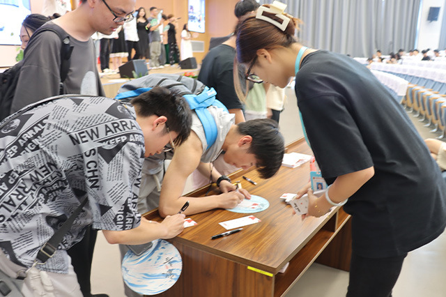 典礼以青春不场,待再遇你为主题,寓意着毕业生们带着青春的活力和对未来的憧憬,踏上新的征程。活动现场,气氛温馨而热烈。参与活动的志愿者及老师们,精心准备了色彩鲜艳、图案精美的飘漆团扇,并在团扇上写满了对毕业生的祝福语。这些团扇不仅是对中华优秀传统文化的传承和展示,更是对毕业生们未来人生道路的美好祝愿和殷切期望。