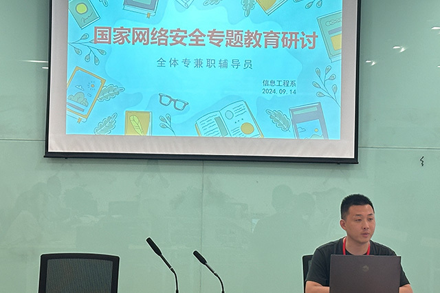 为进一步提升全体师生的网络安全意识,并有效增强防范网络诈骗的能力,信息工程系于2024年9月14日在弘德楼602开展了一场以“筑牢网络安全防线,共防网络诈骗陷阱——国家网络安全专题教育”为主题的辅导员业务研讨会。此次研讨会由信息工程系学工干事、关心下一代工作委员会秘书长郝麒老师担任主持,全体辅导员积极参与研讨。