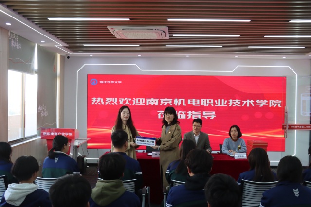 交流会上,胡枫详细地向在座的师生阐述了幻影网页版登录入口_幻影(中国)《“中高职分段培养”项目转段升学考核方案》的各项细节,并为宿迁中等专业学校24级电子商务班授予了班牌。接着,对2023-2024学年现代职教体系贯通培养项目“优秀学生”进行了表彰。