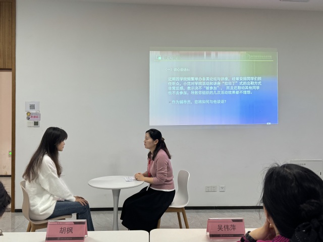 大赛流程紧凑而充实,主要包含带班情况介绍、谈心谈话环节。在带班情况介绍环节,辅导员们详细介绍了自己所带班级的基本情况、学风建设、日常管理等方面的成效,展现了辅导员对班级管理和学生发展的深入了解与独到见解。谈心谈话环节则通过模拟与学生进行谈话的方式,考察了辅导员的教育引导能力、解决学生困惑和实际问题的能力。在案例分析环节,辅导员们针对提供的学生工作案例进行了深入分析,提出了切实可行的解决方案,并阐述了其可行性和有效性。