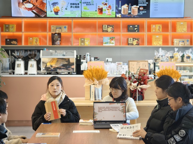 12 月 19 日,阳光正好,信息工程系在蓝岛书院举办以 “啡” 常阅读,“书” 适青春为主题的阅读分享会。蓝岛书院内咖香四溢,众多同学慕名而来,现场气氛热烈。此次分享会由信息工程系党支部书记胡枫,辅导员臧琼、图书馆王君,信息工程系10名团学骨干、5名心理气象站学生共同参加。