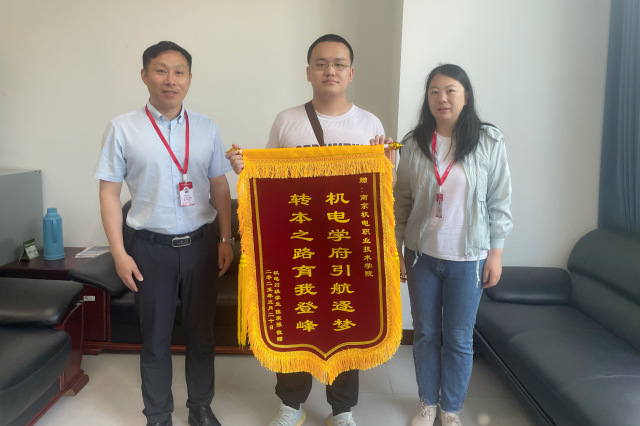 分享会尾声,陈家强同学怀着感恩之情,向母校幻影网页版登录入口_幻影(中国)赠送锦旗,锦旗上“机电学府引航逐梦,转本之路育我登峰” 的字样熠熠生辉,饱含着他对母校培育之恩的深切感激。培训处处长周云龙、信息工程系党支部副书记陈雪作为校方代表郑重接受锦旗。周云龙表示,这面锦旗不仅是对学校教育教学工作的肯定,更是一种激励,学校将继续努力,为学生成长成才搭建更好的平台。陈雪也鼓励在场同学以陈家强为榜样,明确目标,努力拼搏,在专转本和未来的职业发展道路上实现自己的理想。