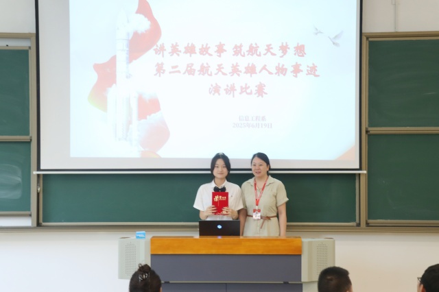 此次“讲英雄故事,筑航天梦想”演讲比赛的成功举办,不仅展现了信息工程系学子的青春风采,更通过“资助育人”与航天精神的深度融合,让奋斗力量在校园中生根发芽,以“观赛+育人”的形式将资助关怀与精神激励相结合——他们在聆听航天英雄攻坚克难的奋斗故事中,感受从戈壁荒漠到浩瀚星空的逐梦历程,这种将物质帮扶与精神引领相统一的实践,既让航天精神在校园中得到传承与弘扬,更以英雄事迹为灯,为受助学子照亮逐梦征程。