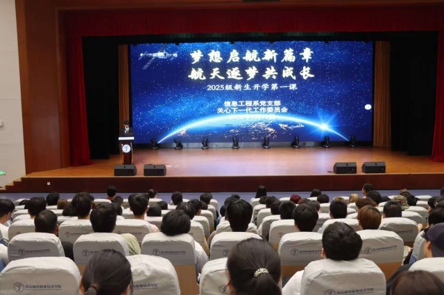 9月15日上午,信息工程系在青春剧场举行2025级新生开学第一课。信息工程系主任王国珍、党支部书记陈雪、教学副主任刘娴及全体新生辅导员与2025级新生齐聚一堂,以专业引领、精神铸魂、素养培育为核心,为新生开启大学成长新篇章。