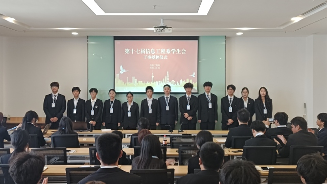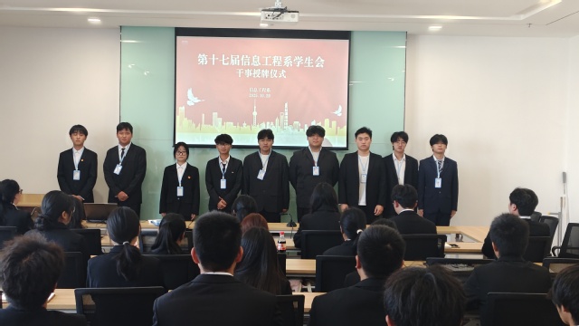 为强化学生会组织建设,明晰干事职责使命,凝聚团队服务力量,10月29日,信息工程系在“一站式”学生社区隆重举办第十七届学生会干事授牌仪式。信息工程系党支部青年统战委员、关心下一代工作委员会秘书、学生会指导老师郝麒及第十七届学生会全体成员共同参与,仪式在庄重而热烈的氛围中有序开展。