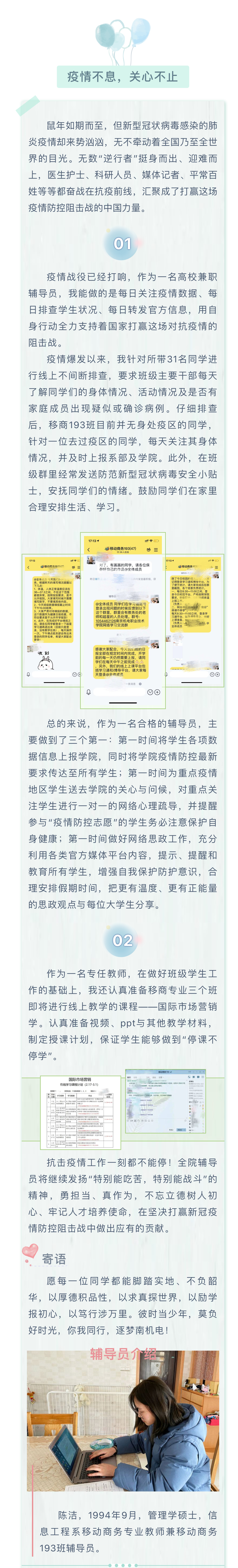 【辅导员特辑】信息工程系|陈洁:疫情不息,关心不止