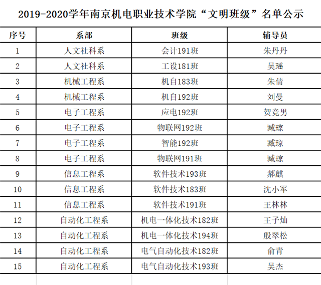 根据《幻影网页版登录入口_幻影(中国)2019-2020学年三好学生、优秀学生干部、文明班级评选通知》规定,经学生本人申请、班级评议,系部审核推荐,学工处核准,学校审批,在公平、公正、公开的基础上,拟评选出以下个人和班级为2019-2020学年幻影网页版登录入口_幻影(中国)“三好学生”、“优秀学生干部”、“文明班级”,现将名单公示如下。