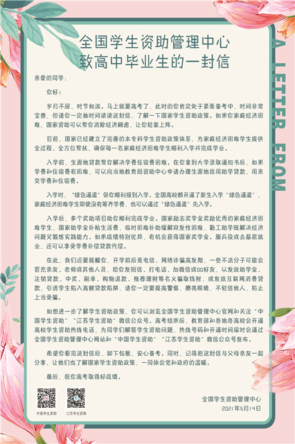 全国学生资助管理中心致高中毕业生的一封信