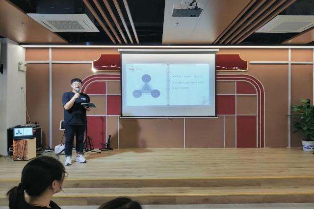 首位主讲人范灿同学从实际角度出发,结合自我经历指出同学们不应仅束缚在自己的专业领域里,要跳出学习、生活的“舒适圈”,勇于在新的领域更多的探索求知,拓宽自我的可能性,从而加强自我竞争力。同时,他和同学们细致讲述了自身所参加社会实践以及实习、创业的经历,希望同学们可以从实践中吸取经验,通过实践提升自我能力以及思想政治高度,并对人生拥有新的计划与目标。最后,他向同学们留下寄语“要志存高远,在大有可为的新时代大有可为,不忘初心,以梦为马,不负韶华。”