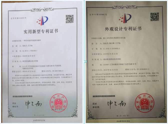 在蓝岛创客空间,我和伙伴还设计了一款不一样的“gift”——基于万年历的圣诞彩灯音乐盒。在这款创客作品的基础上,加上奇思妙想的创意,进行了相应的改进,最终成功申请了外观专利。我作为一名创客,会比之前更加细心的观察生活中的物品,去发现他们不足,然后对其进行改进。我的“保温杯泡茶系统”申请了一个实用新型专利,并被成功授权。