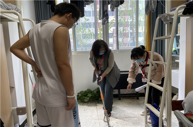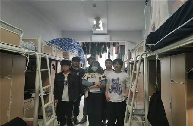 走访过程中大伙都笑称这是一次抽盲盒的经历,每间宿舍的情况都不一样,遇到的困难也都各异,但是每当问及学生对于校园封闭管理的感受时,学生的理解、支持、宽容、清醒的态度让在场的老师动容且欣慰。走访中老师们热情的话语、亲切的问候,学生们落落大方的回答和热情洋溢的介绍,都让此次宿舍走访倍显温情和有爱。