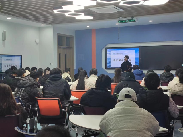 为发挥优秀学生榜样示范和引领作用,展现昂扬向上的精神风貌,2022年12月4日下午,校学生会在思学楼409智慧教室开展第十七期优秀学子分享会。本次分享会由信息工程系李想同学、人文社科系田秋雨同学担任主讲人,校学生会学习部干事汤轶聪担任主持人,各系60余名同学参加本次活动。
