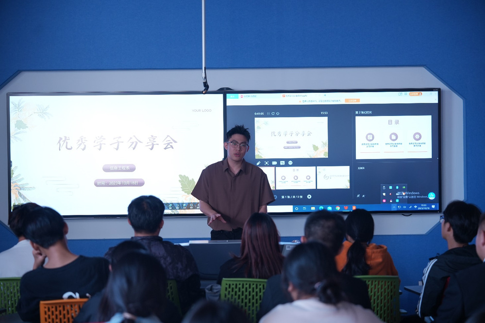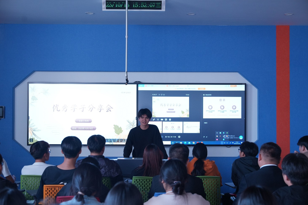 交流会上,两位学长从自身的经历出发,畅谈了学习心得、备考方法、如何突破瓶颈期、如何调整学习心态等问题。信息工程系第十四届学生会主席李想提醒同学们要勇于看到自己的缺陷,积极改正自身的问题。陶林峰同学则告诉大家学习是打开人生大门的一把钥匙,并鼓励同学们要明确学习目标、平时打好基础、做好职业规划。两位优秀学长的精彩分享,赢得了同学们的阵阵掌声。会后,张永杰对此次分享会作总结。学长们勉励学弟、学妹们要汲取榜样力量,砥砺奋进前行,能够将此次分享会的宝贵经验与自己的实际情况对接,以更加饱满的热情投入到学习生活中去。