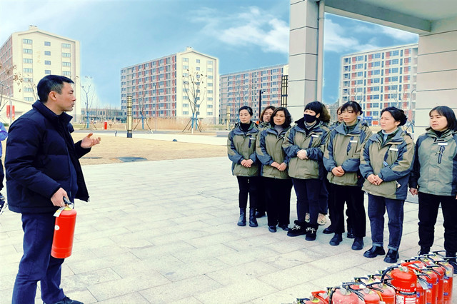 灭火演练结束后,保卫处王贵荣老师讲述了如何正确使用对讲机、喊话器、防烟面罩等消防用具,进一步提升了寓管工作人员应对突发事件的能力,将安全意识深植于心。