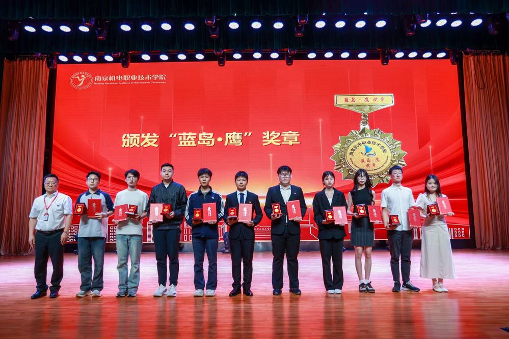 “蓝岛・鹰” 奖章颁发环节将现场氛围推向高潮,党委书记、校长周庆礼为奖章获得者颁奖。该奖项作为学校毕业生最高荣誉,旨在表彰兼具专业素养与社会担当的学子。