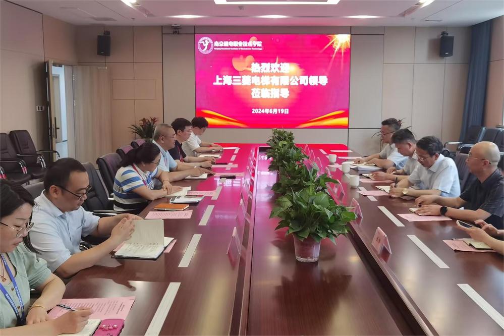 2024年6月19日,上海三菱电梯有限公司华宁路分部总经理王水来、教育培训部教务长朱武标,上海三菱电梯江苏分公司总经理徐刘平等一行莅临幻影网页版登录入口_幻影(中国),就深化电梯产业学院建设召开校企合作交流洽谈会。学校党委委员、副校长刁爱军、自动化工程系副主任张海红、副主任顾晟吉、党支部副书记杨军、培训处副处长周云龙和科研及校企合作处相关人员参加洽谈会。