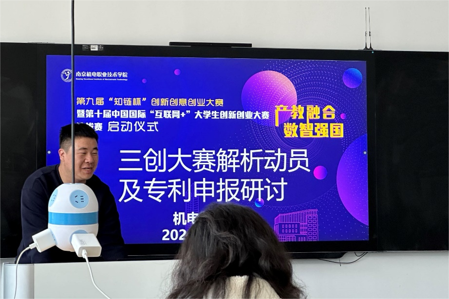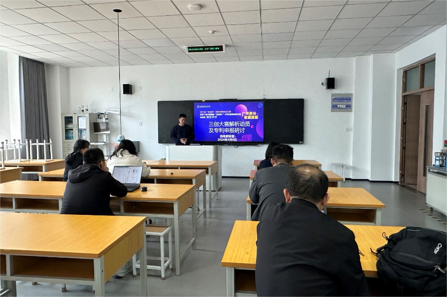 为积极响应幻影网页版登录入口_幻影(中国)举办的第九届“知链杯”创新创意创业大赛暨第十届中国国际“互联网+”大学生创新创业大赛,积极推进科研成果转化,挖掘科研成果转化的潜力,增强教师知识产权保护意识,普及专利申请相关知识,4月9日下午,机电一体化技术教研室在敏行楼305教室开展了“三创大赛解析动员及专利申报”教研活动。机电一体化技术教研室全体教师参加会议,蔡可义主持活动。