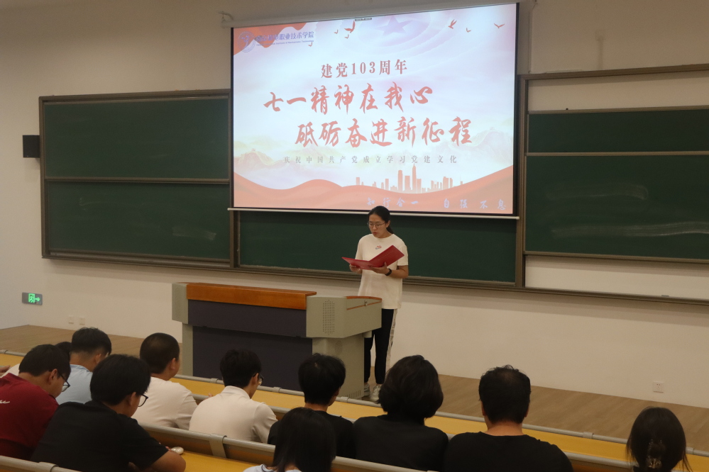 中国共产党成立103周年之际为了深入学习贯彻习近平新时代中国特色社会主义思想和党的二十大精神,强化青年学生的政治引领,加强党史学习教育,更好落实好党建带团建工作,更好履行共青团引领凝聚青年、组织动员青年、联系服务青年的职责,7月1日,自动化工程系团委在善学楼103开展弘扬伟大建党精神主题团课全体团干部参与其中。