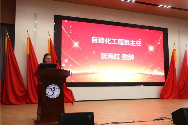 张海红副主任在颁奖仪式上致欢迎辞。她表示,校企合作设立奖学金对专业人才培养十分重要。张海红回顾了双方合作历程中的重要节点与显著成果,指出校企双方秉持优势互补、合作共赢的原则,携手成立南京机电·上海三菱电梯产业学院,并对未来合作前景充满期待。